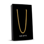 The Keays 3.5 mm Curb Chain is our top chain, it delivers a refined modern edge in a sleek, versatile profile. Precision-flattened links lie flush to form a clean ribbon of gold that catches light. At 3.5 mm wide, it adds just enough presence without bulk. It’s the go-anywhere staple you’ll reach for every day.